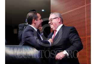 CIUDAD DE MÉXICO, 07MARZO2017.- Ernesto Cordero, senador del PAN, y Rogelio Granguillhome embajador de Alemania, se saludan al finalizar la toma de protesta de tres embajadores; Alemania, Reino Unido y Grecia. FOTO CUARTOSCURO.COM