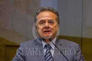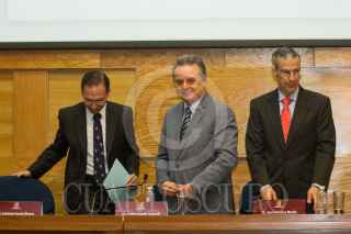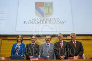 CIUDAD DE MÉXICO, 08MARZO2017.- Santiago García Álvarez, rector del Campus México de la Universidad Panamericana, Pedro Joaquín Coldwell, secretario de Energía, y José González Morfín, durante la presentación de la licenciatura EconomíaUP 2017, en el Banco de México. FOTO: ISAAC ESQUIVEL /CUARTOSCURO.COM