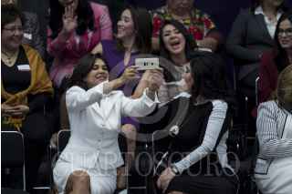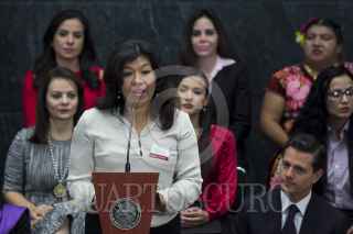 CIUDAD DE MÉXICO, 08MARZO2017.- El presidente Enrique Peña Nieto; su esposa Angélica Rivera de Peña, y Lorena Cruz Sánchez, presidenta del Instituto Nacional de las Mujeres (INMUJERES), durante el evento con motivo del Día Internacional de la Mujer, en las inmediaciones de la Residencia Oficial. Peña Nieto destacó la importante labor que desempeñan las mujeres día a día en la vida pública y en la política, así como la lucha que se ha venido dando en contra del machismo. FOTO: GALO CAÑAS /CUARTOSCURO.COM