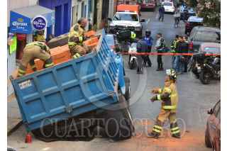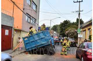 CIUDAD DE MÉXICO, 08MARZO2017.- Un camión de carga se hundió en la calle de Antonio Rodríguez, entre centenario y Tlalpan, en la colonia San Simón Ticomac FOTO: ARMANDO MONROY /CUARTOSCURO.COM