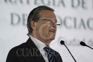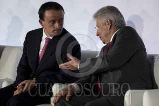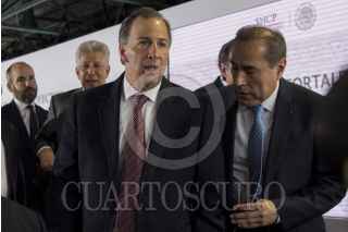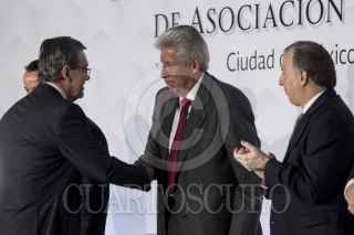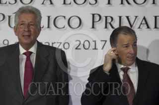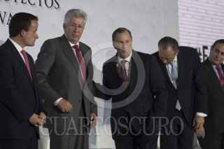 CIUDAD DE MÉXICO, 09MARZO2017.- Gerardo Ruíz Esparza, secretario de Comunicaciones y Transportes; José Antonio Meade Kuribreña, secretario de Hacienda y Crédito Público, y José Reyes Baeza, director general del ISSSTE, durante la presentación de la “Estrategia de Impulso a los Proyectos de Asociación Público-Privado”. En el acto se anunció la inversión por 22 mil millones de pesos en 12 proyectos de iniciativa privada. FOTO: GALO CAÑAS /CUARTOSCURO.COM