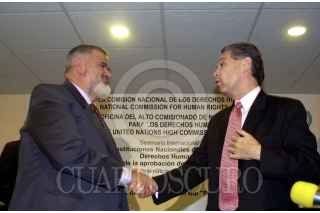 José Luis Soberánes y Luis Ernesto Derbez, durante el seminario de Constituciones Nacionales de Protección y Promoción de los Derechos Humanos ¨Aprobación de los Principios de París¨, organizado por la Comisión Nacional de Derechos Humanos. FOTO: Moisés Pablo/CUARTOSCURO.COM
