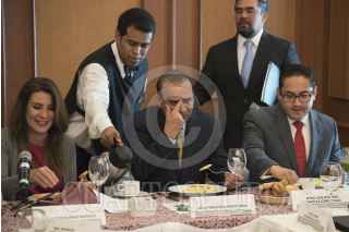 CIUDAD DE MÉXICO, 09MARZO2017.- Alfonso Navarrete Prida, Secretario de Trabajo y Previsión Social, y Soraya Pérez Munguía, Presidenta de la Federación de Colegios de Economistas, y el maestro José Eduardo González Gómez, encabezaron una reunión de trabajo con el gremio de economistas en el Hotel Emporio. FOTO: TERCERO DÍAZ /CUARTOSCURO.COM