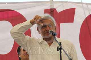 JALCOMULCO, VERACRUZ, 09MARZO2016.- El dirigente nacional de MORENA, Andrés Manuel López Obrador, se presento esta mañana en el icono de jalcomulco en un mitin político, aseguró tener pruebas de que el Presidente de México congeló denuncias contra el gobernador Miguel Ángel Yunes Linares. FOTO: CUARTOSCURO
