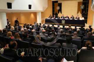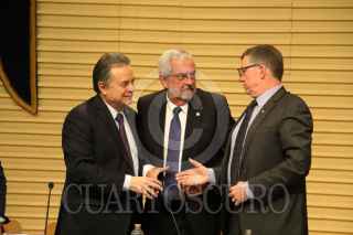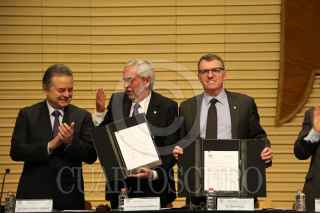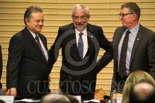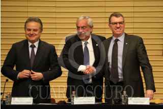 CIUDAD DE MÉXICO, 10MARZO2017.- Pedro Joaquín Coldwell, Secretario de Energia, Enrique Graue Wiechers, rector de la UNAM y David Turpin, presidente de la universidad Alberta, encabezaron la firma de cooperación entre la UNAM-SENER-CONACYT-IMP y la Universidad de Alberta. FOTO: SAÚL LÓPEZ /CUARTOSCURO.COM