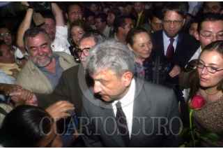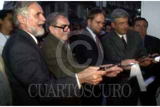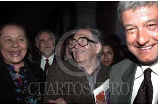 Gabriel Garcia Márquez, premio nobel de literatura, y Andrés Manuel López Obrador, jefe de Gobierno capitalino, luego de inagurar la feria del libro de la ciudad de México, la cual tuvo como invitada a la Ciudad de Bogotá, Colombia. FOTO: Juan Pablo Zamora/CUARTSOCURO.COM