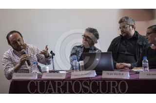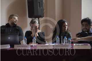 CIUDAD DE MÉXICO, 11MARZO2017.- Marcel del Castillo, Pilar Aguilar, y Nirvana Paz. durante la lectura que hace Edgar Hernández, Editor de Cultura en Excélsior, criticando al fotógrafo y columnista Ulises Castellanos de El Universal, en el Centro de la Imagen durante la mesa "Las redes sociales y las nuevas formas de circulación de la crítica". FOTO: TERCERO DÍAZ /CUARTOSCURO.COM