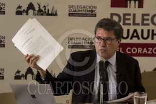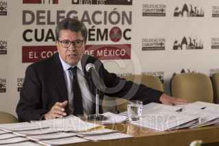 CIUDAD DE MÉXICO, 12MARZO2017.- Ricardo Monreal, jefe delegacional en Cuauhtémoc, ofreció conferencia a medios para dar a conocer la documentación de los contratos, que en días anteriores fueron señalados de favoritistas para personas relacionadas con su hija. Asimismo el delegado en Cuauhtémoc declaró que presentaran una demanda por difamación hacia su persona y su familia. Por otro lado hablo sobre la solicitud de auditoría de ocho empresas asociadas a Claudio X. González, director general de Mexicanos Primero, por el supuestos conflictos de interés, desviación de recursos y lavado de dinero. FOTO: GALO CAÑAS /CUARTOSCURO.COM