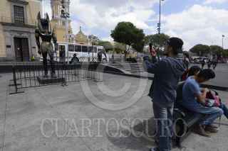 TOLUCA, ESTADO DE MÉXICO, 13MARZO2017.- Los visitantes de la Plaza Ángel María Garibay se vieron sorprendidos al toparse con una estatua de Anubis, dios de la muerte en el antiguo Egipto, que fue instalada el día de hoy y que forma parte de la exposición “Tutankamón. La Tumba, el Oro y la Maldición”, que será exhibida en el Museo de Bellas Artes. FOTO: ARTEMIO GUERRA BAZ /CUARTOSCURO.COM