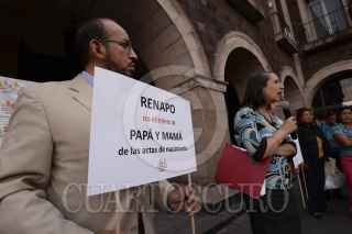 TOLUCA, ESTADO DE MÉXICO, 14MARZO2017.- El Frente Nacional por la Familia se manifestó frente a las oficinas del Registro Civil expresando su rechazo de que el Registro Nacional de Población, por instrucciones de la SEGOB, haya eliminado de las actas de nacimiento la figura de Madre y Padre. FOTO: ARTEMIO GUERRA BAZ /CUARTOSCURO.COM