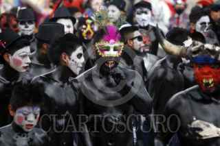 SAN NICOLÁS DE LOS RANCHOS, PUEBLA, 14MARZO2017.- En la tercera semana de cuaresma se realizó la tradicional fiesta del "adiós de la carne" en el poblado de San Nicolás de los Ranchos ubicado en las faldas del volcán Popocatépetl, donde hombres pintados o "Xinacates", recorren las calles con los cuerpos pintados a base de aceite comestible y pintura en polvo. Los "pintados" piden dinero intimidando a las personas que se encuentran a su paso ´pal baño o la cerveza" a cambio de no ser manchados. FOTO: HILDA RÍOS /CUARTOSCURO.COM