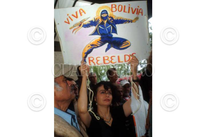 Un grupo de personas se manifestaron frente a la embajada de Bolivia en México, para mostrar su solidaridad con el pueblo boliviano y su repudio a las politicas de Sánchez de Lozada, presidente de esa nación. FOTO: Nelly Salas/CUARTOSCURO.COM