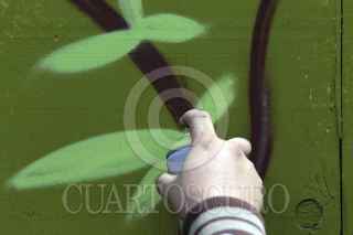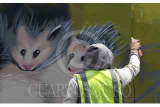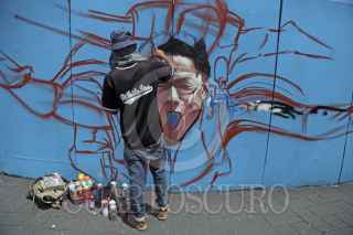 CUERNAVACA, MORELOS, 15MARZO2017.- Jóvenes grafiteros realizan murales en las mamparas que cubren una obra del gobierno estatal. FOTO: MARGARITO PÉREZ RETANA /CUARTOSCURO.COM