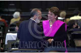 El panista Diego Fernández de Cevallos saluda a su compañera Susana Stephenson, durante la sesión ordinaria del senado. FOTO: Juan Pablo Zamora/CUARTOSCURO.COM
