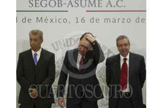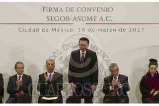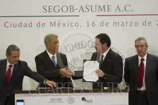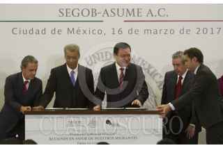 CIUDAD DE MÉXICO, 16MARZO2017.- Miguel Ángel Osorio Chong, secretario de Gobernación, encabezó la firma de convenio entre la Segob y la organización ASUME, en el marco del programa Somos Mexicanos, el cual promueve las ofertas laborales para los mexicanos que son deportadas de Estados Unidos. FOTO: MOISÉS PABLO /CUARTOSCURO.COM
