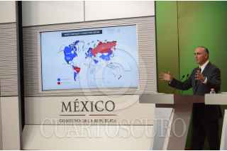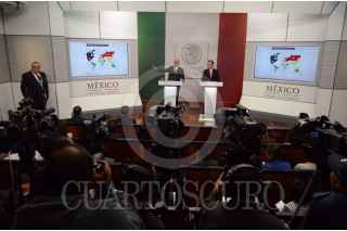 CIUDAD DE MÉXICO, 16MARZO2017.- José Calzada Rovirosa, titular de Sagarpa, y Eduardo Sánchez Hernández, vocero de la Presidencia de la República, aseguraron en conferencia de prensa que las exportaciones de productos agroalimentarios son las más altas de toda la historia y se espera que para este año continúe el crecimiento. FOTO: ANDRÉS YAÑEZ /CUARTOSCURO.COM