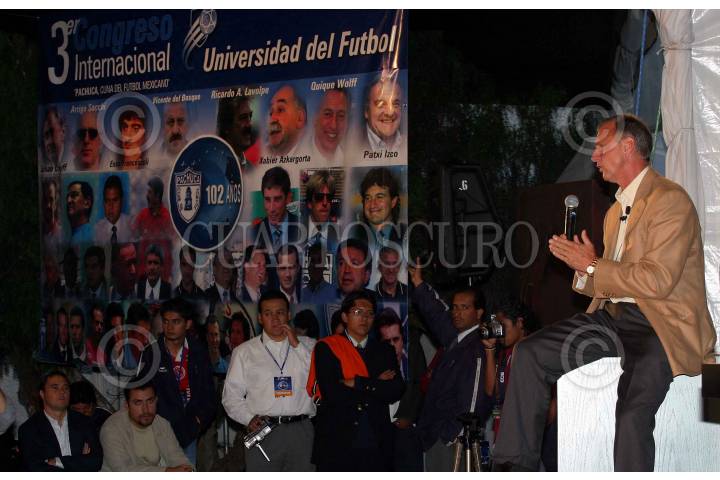 El estratega holándes Johan Cruyff ofreció una confrencia en la Universidad del Futbol del club de fútbol Pachuca con motivo del tercer congreso internacional Pachuca Cuna del futbol mexicano. FOTO: David Martínez Pelcastre/CUARTOSCURO.COM