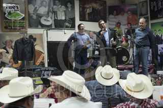 GUADALUPE, NUEVO LEÓN.16MARZO2017.- Anoche en el restaurante “Pilo´s”, fundado en 1954 y que se ha convertido en un centro de difusión de la auténtica música norteña, se presentó el libro “Los Cadetes de Linares, su historia”, de Abel García Garza, (primero de izquierda a derecha), editado por la Universidad Autónoma de Nuevo León (UANL). Lo acompañan el historiador Guillermo Berrones (al centro) y José Alberto Ramirez. experto en música regional e historiador. FOTO: PEDRO VALTIERRA /CUARTOSCURO.COM