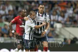 MONTERREY, NUEVO LEÓN, 18MARZO2017.- Jugadores del equipo de los Rayados del Monterrey, celebran el gol ante el equipo del Atlas, en el estadio BBVA Bancomer, partido correspondiente a la jornada 11 de la Liga MX, Clausura 2017. Marcador Final: Monterrey: 2 - Atlas: 0 FOTO: GABRIELA PÉREZ MONTIEL /CUARTOSCURO.COM