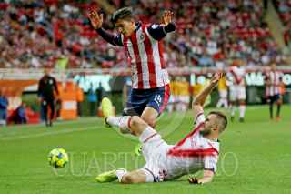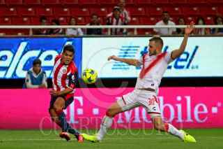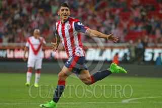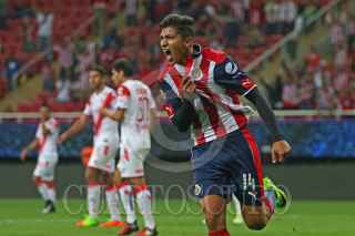 ZAPOPAN, JALISCO. 18MARZO2017.- Ángel Zaldívar, jugador de Chivas celebra su anotación, en partido correspondiente a la Jornada 11 del Torneo Clausura 2017, en donde se enfrentan las Chivas de Guadalajara frente a los Tiburones Rojos del Veracruz, en partido que se lleva a cabo en el Estadio Chivas, el marcador al final del partido fue de 2-0 a favor del equipo local. FOTO: FERNANDO CARRANZA GARCIA / CUARTOSCURO.COM