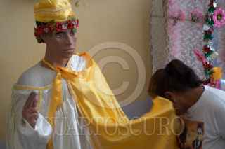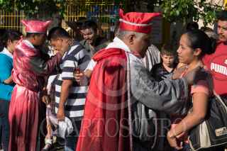ESPINAZO, NUEVO LEÓN, 19MARZO2017.- Día de San José, día de celebrar el santo de José de Jesús Fidencia Síntora Constantino, conocido como el milagroso Niño Fidencio. A esa alejada comunidad llegaron miles de peregrinos provenientes de diversos estados de la república y de los Estados Unidos, para seguir el ritual: organizados en “cordones”, dar vuelta al pirul, avanzar por la calle Jerusalem para rendirle tributo en su tumba y pasar luego al “charquito” donde se realizan diversas ceremonias de curación y alivio por parte de los “cajitas” o “materias” en los que el Niño “penetra” cuando entran en trance. FOTO: PEDRO VALTIERRA /CUARTOSCURO.COM