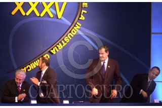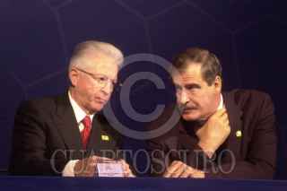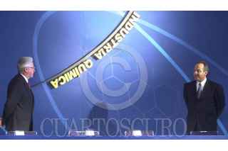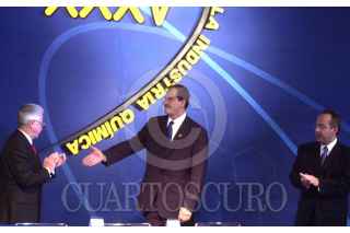 Raul Muñoz Leos, director de PEMEX, junto con el presidente de México, Vicente Fox Quesada, y Felipe Calderón Hinojosa, secretario de Energía, al inició de la inauguración del Foro de la Industria Química. FOTO:Eunice Adorno/CUARTOSCURO.COM