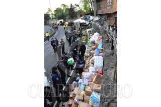 CIUDAD DE MÉXICO, 21MARZO2017.- Un trailer que transportaba papel higiénico se volcó sobre el Viaducto Tlalpan en la incorporación de la autopista México-Cuernavaca. FOTO: ARMANDO MONROY /CUARTOSCURO.COM