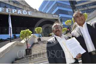 CIUDAD DE MÉXICO, 22MARZO2017.- El Secretario Electoral y el Secretario de Acción Política Estratégica del Comité Ejecutivo Nacional (CEN) del Partido de la Revolución Democrática (PRD), Octavio Martínez Vargas y Alejandro Sánchez Camacho, respectivamente, acudieron esta mañana a la Fiscalía Especializada para la Atención de Delitos Electorales (FEPADE) a interponer una denuncia contra el Secretario de Salud del Estado de México, Cesar Gómez Monge y en contra del Presidente Municipal de Ecatepec, Indalecio Ríos Velázquez. FOTO: PRD /CUARTOSCURO.COM
