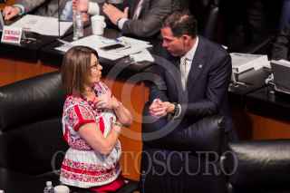 CIUDAD DE MÉXICO, 22MARZO2017.- La senadora Angélica de la Peña y Pablo Escudero, presidente del Senado, conversaron durante la sesión realizada en dicha Cámara. FOTO: GALO CAÑAS /CUARTOSCURO.COM