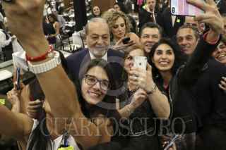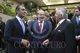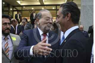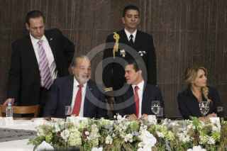 CIUDAD DE MÉXICO, 24MARZO2017.- Carlos Sim Helú y su hijo Carlos Slim Domit al terminio del encuentro con la comunidad libanesa, donde asistió el presidente Enrique Peña Nieto y su esposa Angeica Rivera de Peña. FOTO: SAÚL LÓPEZ /CUARTOSCURO.COM