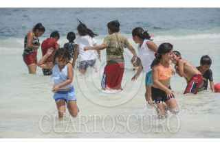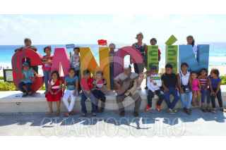 CANCÚN, QUINTANA ROO. 25MARZO2017.- 19 niñas y niños de San José II, comunidad ubicada a 45 kilómetros al norte de la cabecera municipal de Felipe Carrillo Puerto, llegaron a Cancún para conocer el mar, en uno de los tours del programa Viajemos por Quintana Roo que busca que los quintanarroenses, y sobre todo la población de menos recursos, pueda disfrutar del paraíso, conocer su estado y, así, amarlo y cuidarlo. FOTO: ELIZABETH RUIZ /CUARTOSCURO.COM