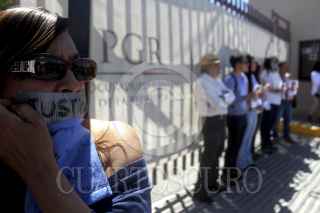 CIUDAD JUÁREZ, CHIHUAHUA,25MARZO2017.- Miembros de diferentes medios de comunicación se manifestaron en solidaridad ante el asesinato de la periodista Miroslava Breach, la protestafue de manera silenciosa frente a las instalaciones de la Procuraduría General de la República. FOTO: NACHO RUIZ /CUARTOSCURO.COM