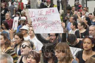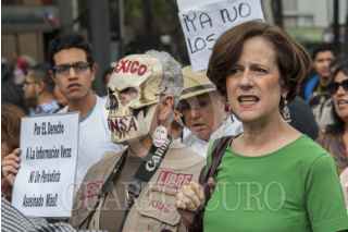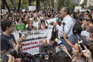 CIUDAD DE MÉXICO, 25MARZO2017.- Periodistas de diferentes medios de comunicación, acompañados por ciudadanos, realizaron una marcha del Ángel de la Independencia a las instalaciones de la Procuraduría General de la República, para protestar en contra de los asesinatos de miembros de su gremio. FOTO: TERCERO DÍAZ /CUARTOSCURO.COM