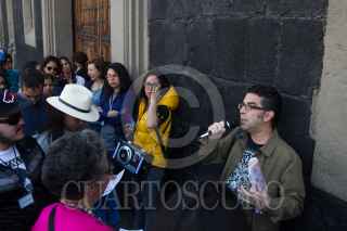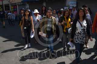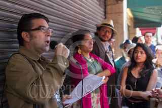 CIUDAD DE MÉXICO, 26MARZO2017.- El escritor Leonardo Tarifeño realizó una caminata literaria para visitar los sitios que en vida recorrió el escritor chileno Roberto Bolaño (1953-2003) por el centro histórico y que influyeron en sus libros, tal es el caso de "Los detectives salvajes". Los caminantes partieron de la calle de Argentina y Belisario Domínguez rumbo a la Alameda Central. FOTO: MOISÉS PABLO /CUARTOSCURO.COM