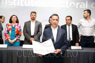 SALTILLO, COAHUILA, 26MARZO2017.- Guillermo Anaya se registró como candidato de la Alianza Ciudadana por Coahuila (PAN, PES, UDC y PPC), en donde estuvo acompañado por Ricardo Anaya, dirigente nacional blanquiazul, el expresidente Felipe Calderón Hinojosa, José Rosas Aispuro, gobernador de Durango, la senadora Silvia Guadalupe Garza Galván, Santiago Creel y Fernando Herrera Ávila, coordinador del PAN en el Senado. FOTO: CUARTOSCURO.COM