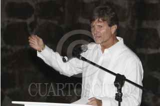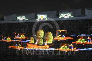 ACAPULCO, GUERRERO 26MARZO2017.- María Cristina García Cepeda, titular de la Secretaría de Cultura, y Héctor Astudillo Flores, gobernador del Estado de Guerrero durante la proyección del Video Mapping del Fuerte de San Diego. FOTO: BERNANDINO HERNÁNDEZ / CUARTOSCURO.COM