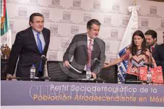 CIUDAD DE MÉXICO, 27MARZO2017.- Luis Raúl González, titular de la Comisión Nacional de Derechos Humanos, Julio Santaella, Presidente del El Instituto Nacional de Estadística y Geografía, y Alexandra Haas Paciuc, onsejo Nacional para prevenir la discriminación (CONAPRED), encabezaron la presentación del Perfil Sociodemográfico de la población afrodescendiente en México. FOTO: TERCERO DÍAZ /CUARTOSCURO.COM