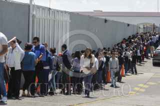 TOLUCA, ESTADO DE MÉXICO, 27MARZO2017.- Una larga fila de hombres y mujeres se pudo observar en el IEEM en donde se abrieron 1200 vacantes temporales por el periodo electoral, desde temprana hora los aspirantes acudieron con sus papeles para poder realizar una entrevista de trabajo. FOTO: ARTEMIO GUERRA BAZ / CUARTOSCURO.COM