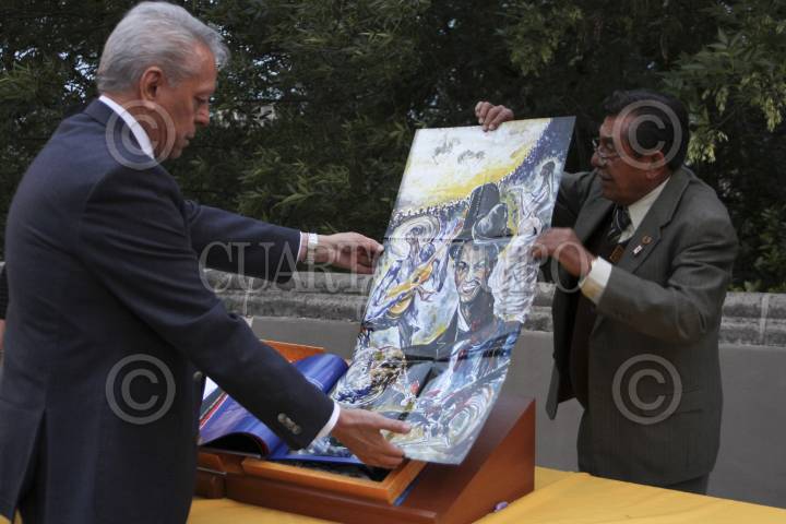 CIUDAD DE MÉXICO, 27MARZO2017.- Maty Buitrón, Eduardo Moreno Laparade, Pedro Ferriz de Con y María Sorté en la Presentación del libro “Un Modelo a la Medida” para conmemorar el 106 aniversario del natalicio de Mario Moreno Reyes (Cantinflas), en la explanada del Castillo de Chapultepec. FOTO: ANTONIO CRUZ /CUARTOSCURO.COM