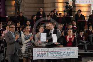 CIUDAD DE MÉXICO, 28MARZO2017.- Arelio Nuño Mayer, Secretario de Educación Pública, y María Cristina García Cepeda, titular de la Secretaría de Cultura, encabezaron la presentación del programa Cultura en tu Escuela, con el propósito de fomentar el arte en los infantes del país. FOTO: TERCERO DÍAZ /CUARTOSCURO.COM