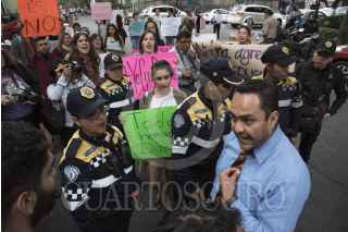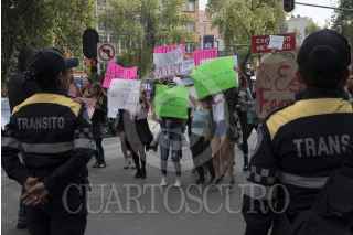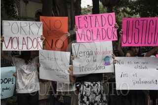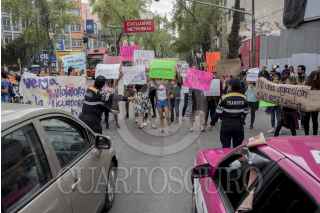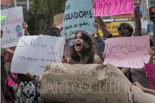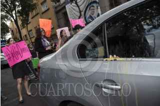 CIUDAD DE NÉXICO, 28MARZO2017.- Diversas organizaciones feministas bloquearon las calles aledañas de la representación del gobierno de Veracruz en la capital, para protestar en contra del amparo que un juez federal concedió a Diego Cruz, uno de los "porkys" acusados de la violación de ka Dafne N. Posterior al dicho bloqueo, las manifestantes se trasladaron a un semáforo de Insurgentes para mostrar sus pancartas y gritas consignas a los automovilistas y transeúntes. FOTO: TERCERO DÍAZ /CUARTOSCURO.COM