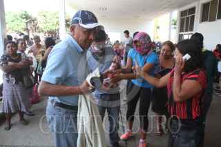 OAXACA, OAXACA, 28MARZO2017.- Estudiantes normalistas que tienen retenidas 12 unidades repartidoras de distintas empresas, repartieron este martes los productos de dos camionetas de la empresa LALA que mantienen al interior del Centro Regional de Educación Normal de Oaxaca (CRENO) entre familiares de los pacientes que son tratados al interior del hospital civil Dr. Aurelio Valdivieso. FOTO: ARTURO PÉREZ ALFONSO / CUARTOSCURO.COM