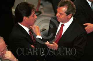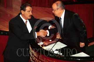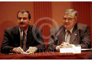 Esta mañana el presidente electo de Mexico Vicente Fox Quesada, se reunio con el gobernador del Estado de Guanajuato y con empresarios que invertiran en la construccion de una linea de Sistema de Transporte Colectivo Metro en dicho estado. FOTO: Joaquin Murrieta/CUARTOSCURO.COM