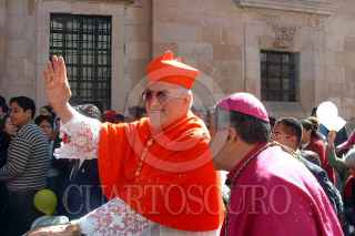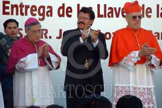 Zacatecas, Zacatecas 18DICIEMBRE2003.- El cardenal Javier Lozano Barran de visita a esta ciudad en donde recibio las llaves de la ciudad de manos del gobernador Ricardo Monreal Avila y el obispo del Estado Fernando Chavez Ruvalcaba. FOTO: Leonardo Garza Treviño/CUARTOSCURO.COM