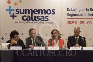 CIUDAD DE MÉXICO, 29MARZO2017.- José Antonio Polo Oteyza, Director General de Causa Común A.C., María Elena Morera, Presidenta de Causa Común A. C., y Alejandro Ramos, Jefe de la Unidad de Asuntos Jurídicos de la Sedena, durante el Foro Debate la seguridad pública en México. FOTO: TERCERO DÍAZ / CUARTOSCURO.COM