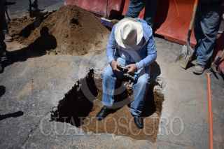 CIUDAD DE MÉXICO, 29MARZO2017.- La Secretaría de Obras y Servicios (SOBSE) del Gobierno de la Ciudad de México concluyó las tres primeras calas como parte de la rehabilitación de la Plaza de la Constitución sin encontrar algún tipo de vestigio con relevancia histórica o arqueológica. Las calas son excavaciones que permiten explorar el subsuelo en búsqueda de infraestructura y tienen el objetivo de evitar algún deterioro del patrimonio histórico ubicado en la principal plaza pública del país. El personal del Instituto Nacional de Antropología e Historia (INAH) denomina esta actividad como arqueología de protección. El titular de la SOBSE, Edgar Tungüí Rodríguez, supervisó personalmente las primeras actividades referentes a la rehabilitación del Zócalo. FOTO: SOBSE /CUARTOSCURO.COM