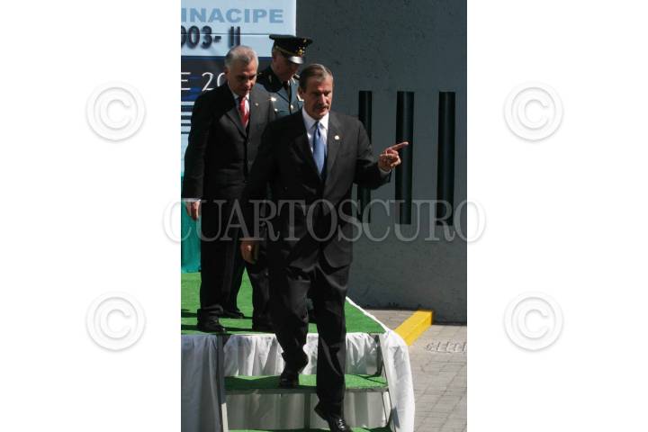 MEXDF19DICIEMBRE2003.- El presidente Vicente Fox Quesada, al término de su participación en la ceremonia de graduación de agentes del ministerio público federal, péritos profesionales, péritos técnicos en crimanislítica y agentes federales de investigación. Esta se celebró en las instalaciones de la Agencia Federal de Investigación. FOTO: Moisés Pablo/CUARTOSCURO.COM