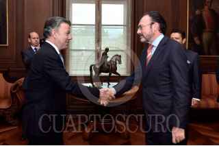 BOGOTÁ, COLOMBIA, 30MARZO2017.- El Secretario de Relaciones Exteriores, Doctor Luis Videgaray Caso, realizó una Visita de Trabajo a Bogotá, Colombia, para refrendar el excelente nivel de entendimiento entre ambos países. El Secretario de Relaciones Exteriores se reunió con el Presidente Juan Manuel Santos, con quien conversó sobre asuntos de interés mutuo y a quien transmitió un mensaje de compromiso y respaldo del Gobierno y pueblo de México al histórico proceso de paz que vive ese país. FOTO: SRE /CUARTOSCURO.COM