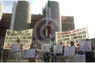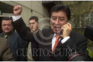 México, D.F. 30DIC2003.- A los diputados priístas de Jalisco, Javier Guizar y Lázaro Arias Martínez, se les pidió abandonaran la sala superior del TRIFE donde se realizaba la sesión pública, cuando manifestaron su desacuerdo con el fallo anunciado. FOTO: Sandra Perdomo/CUARTOSCURO.COM