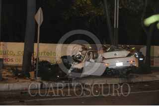 CIUDAD DE MÉXICO, 31MARZO2017.- Cuatro personas fallecieron después de que se estrellaron con el vehículo en el que viajaban a exceso de velocidad alrededor de las 4 de la madrugada de este viernes sobre Paseo de la Reforma, a la altura de Lieja. El conductor resultó lesionado y fue trasladado al Hospital Cruz Roja de Polanco. FOTO: EDUARDO GALINDO /CUARTOSCURO.COM